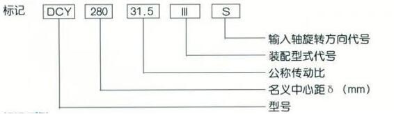 名義中心距為280mm,公稱傳動(dòng)比為31.5,裝配型式第Ⅲ種,輸入軸順時(shí)針方向旋轉(zhuǎn)的三種傳動(dòng)減速器標(biāo)記為DCY280-31.5-ⅢS。