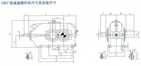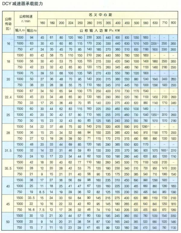 DBY型為二級(jí)傳動(dòng),DCY型為三級(jí)傳動(dòng)。DBY型和DCY型傳動(dòng)為格里森弧齒錐齒輪,二、三級(jí)傳動(dòng)為漸開線圓柱斜齒輪。